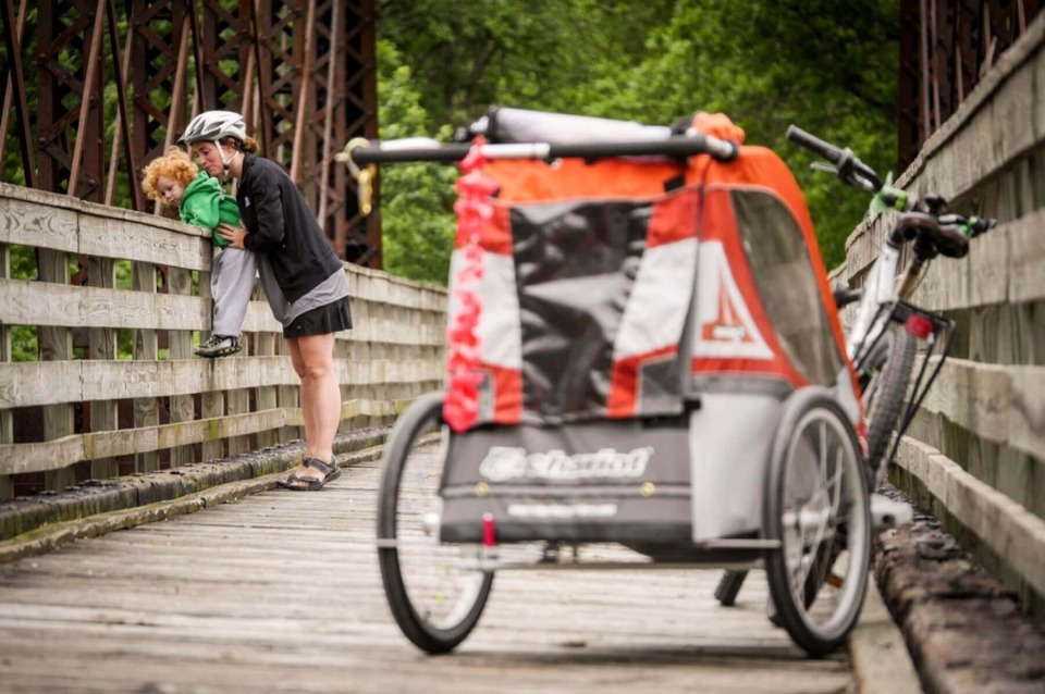 The Iowa Riverfront Trail in Council Bluffs features great views of the Missouri River and downtown Omaha, located just across the river. While the entire trail is paved, note sections of on-road bike paths are found near the south and north ends of the trails.